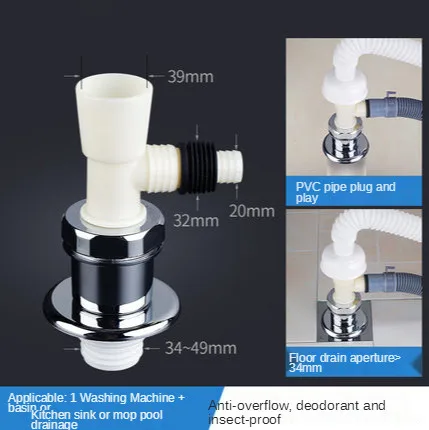 Washing Machine Floor Drain Tee Joint Anti Overflow Cover Kitchen Bathroom Toilet Deodorization Drain Pipe Sealing Connector Drains Aliexpress